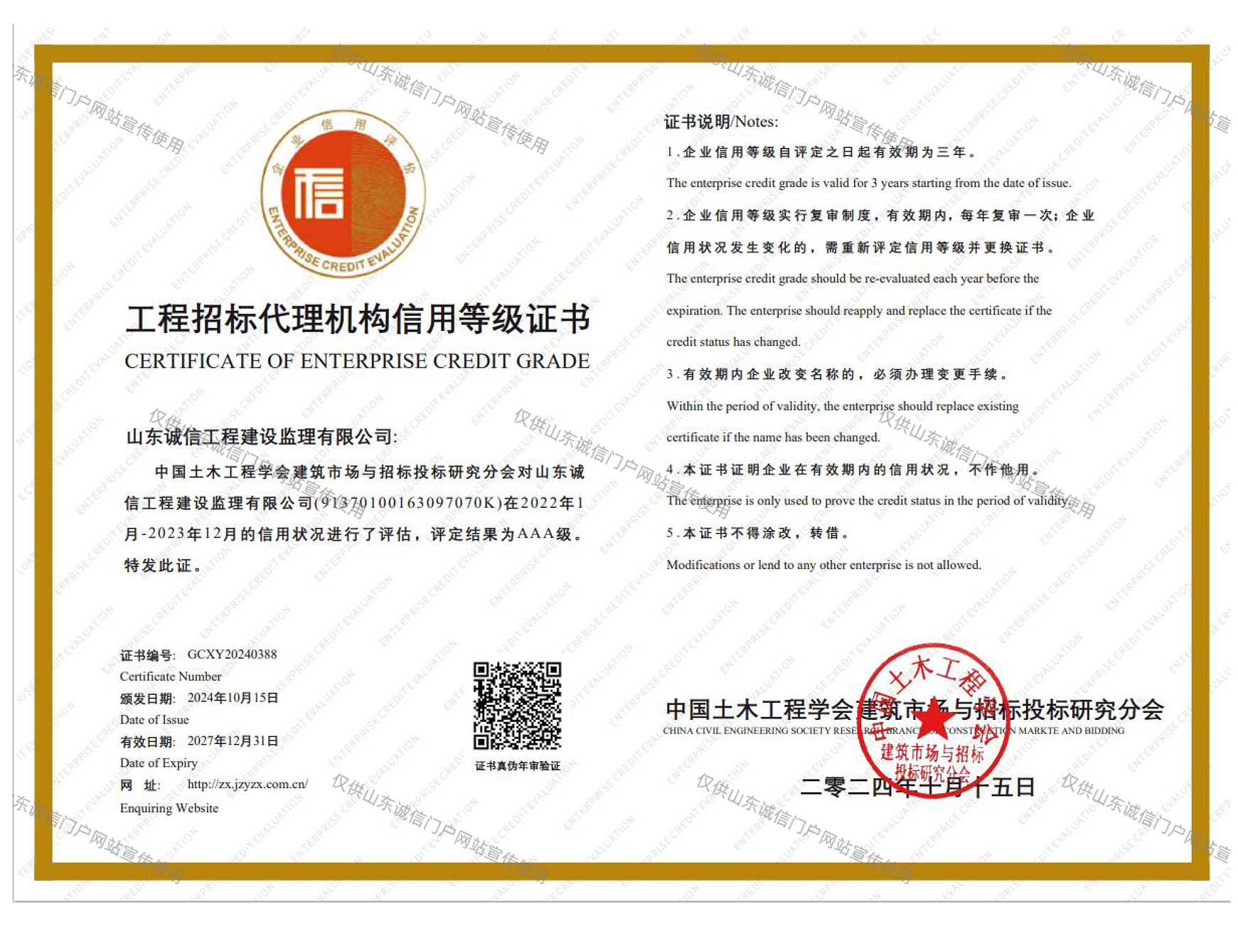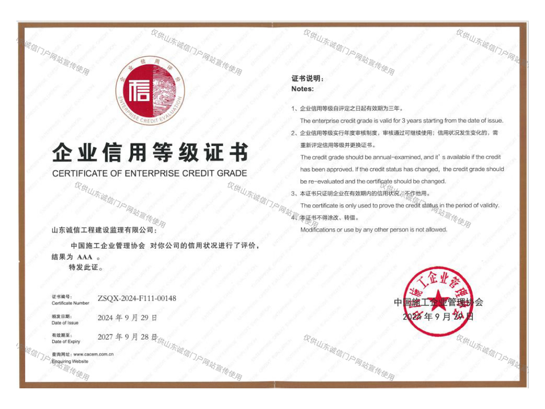 1、中国施工企业管理协会AAA级企业信用等级证书