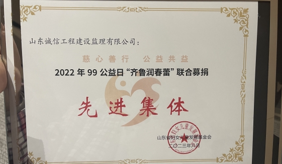 - 山东诚信荣获99公益日“齐鲁润春蕾”联合募捐先进集体